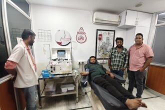 पिण्डवाड़ा के युवा समाजसेवी व रक्तदाता प्रेरक नकुल ओझा ने कैंसर पीड़ित महिला के लिए उदयपुर पहुंच एसदीपी दान किया