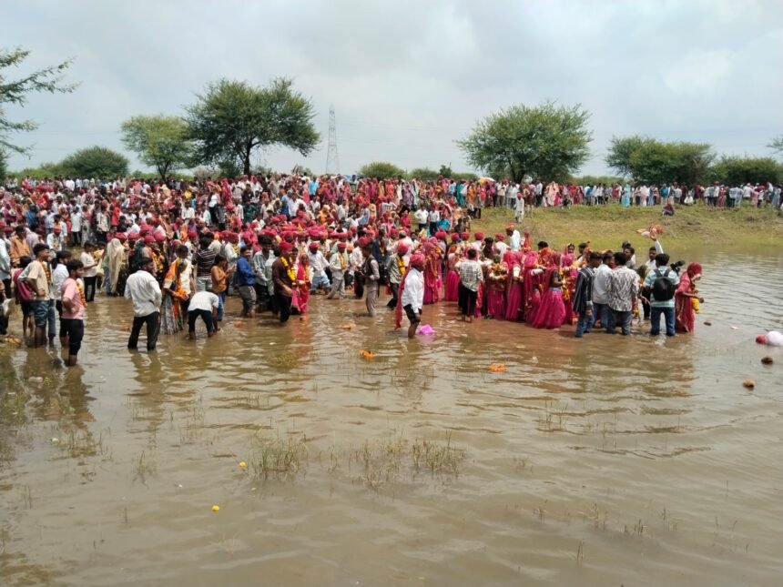 पिंडवाड़ा (राजस्थान): उपखंड पिंडवाड़ा के निकट सिवेरा पंचायत के राजपुरा गांव में गुरुवार 28अगस्त को एक अनोखा और भावुक नजारा देखने को मिला। 40 साल के लंबे अंतराल के बाद, यहां ‘समंदर हिलोरा’ नामक पुरानी रस्म का आयोजन किया गया, जिसमें तीन सौ पचास से अधिक बहनों ने तालाब की पूजा कर अपने भाइयों की सुख-समृद्धि और दीर्घायु की कामना की।